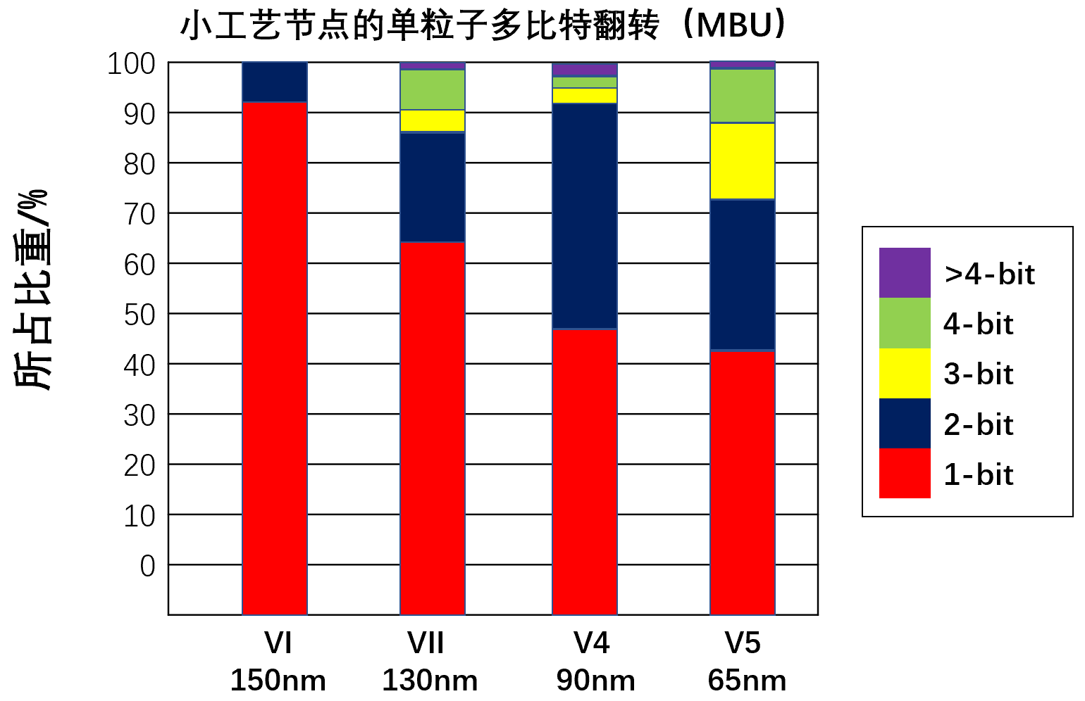 汽车系统的安全等级对于器件是有要求的,特别是ASIL-D等级的动力能源、汽车制动、EBS等系统,对于控制芯片往往要求ASIL-D等级,这些芯片如果在涉及安全控制的环节中出现错误其后果不堪设想。简单举个例子,比如某个刹车系统中指令出现“随机故障”导致需要的制动没有执行,则对于驾驶员和乘客的危险不可估量。而且,软错误的故障来源具有不确定性,设计者需要在每一层都考虑到出现错误的应对方案。随着工艺水平的提升,现在大多芯片采用28nm,甚至7nm的工艺进行生产,器件的容软错误能力差,甚至出现了更难进行故障回复的MBU错误(多bit翻转错误)。实际上,采用28nmCMOS工艺设计的器件比130nm在出现软错误的概率上至少超过3个数量级,这对系统的安全性设计提出了更大的挑战。