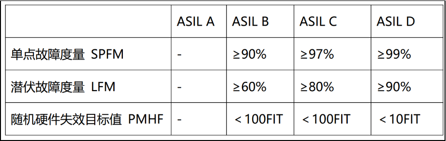 汽车芯片根据其应用场景的危险程度,划分为不同安全等级(QM、ASIL-A至ASIL-D),其中ASIL-D的等级最高,说明其安全要求最严格。行业内通过对芯片的三个指标的计算来划分安全等级,如下图所示。由此可见,1000FIT的故障率远远超过ASIL-B 的等级要求。也意味着,对于130nm工艺下的CMOS工艺设计,随着时序存储容量的变大,对于安全设计的要求则越高。