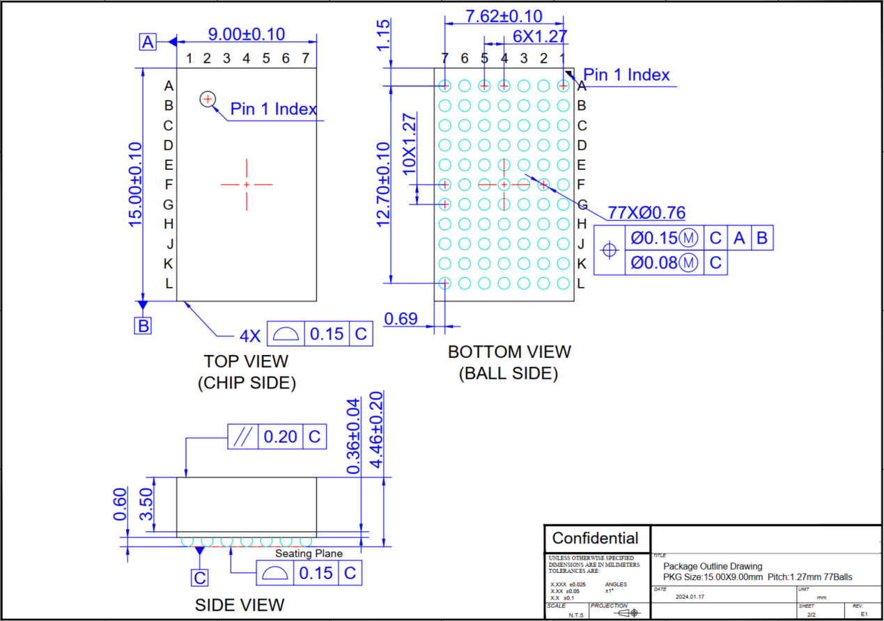 - 封装形式:9mm×15mm×4.46mm BGA77
